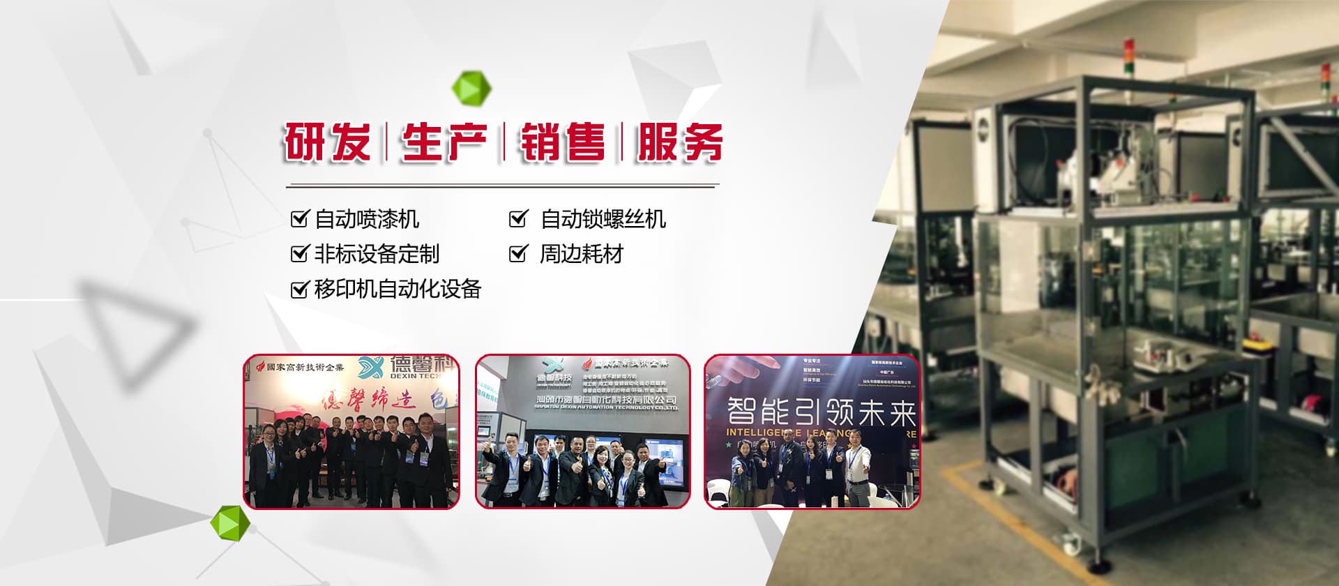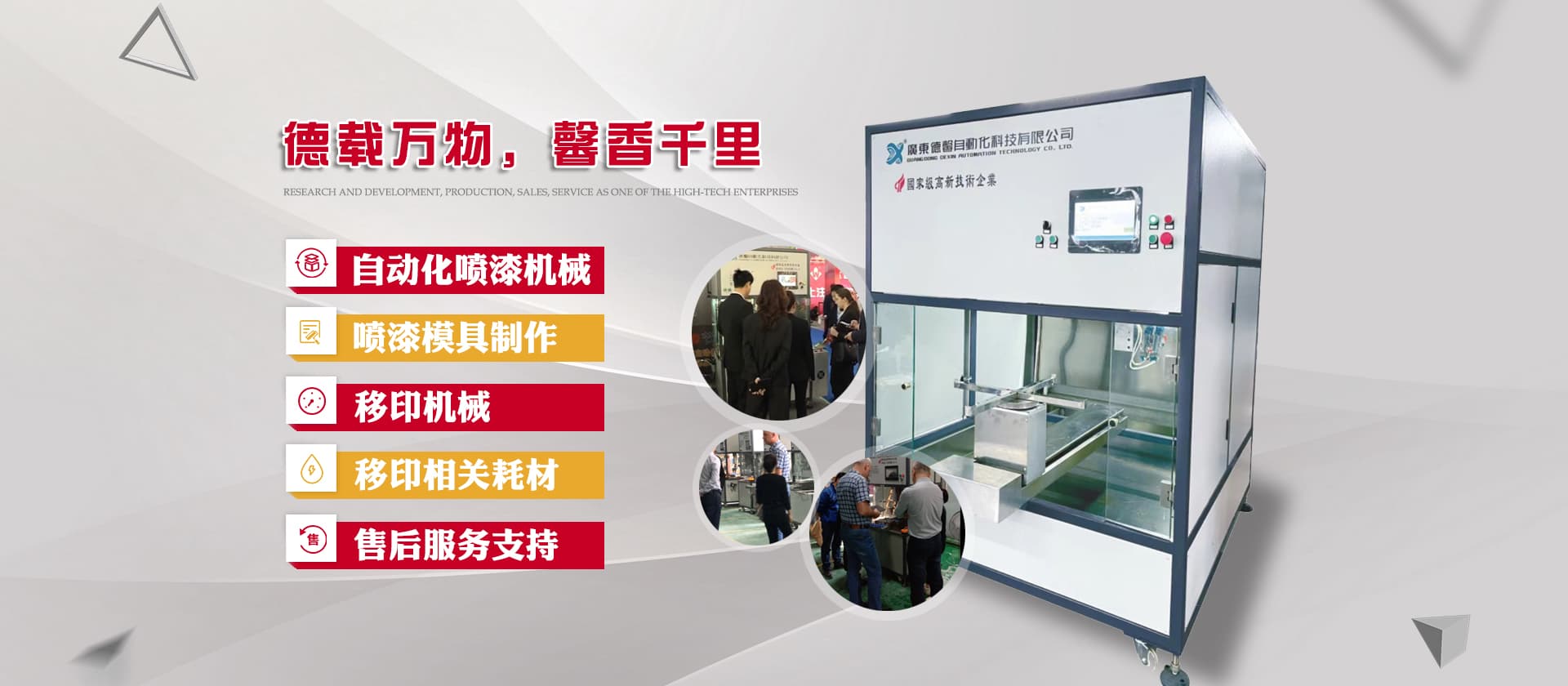 德馨科技創(chuàng)立以來,以改變噴印業(yè)傳統(tǒng)手工生產(chǎn)模式為目標,產(chǎn)品開發(fā)制造堅持以“環(huán)保、智能”為理念,為企業(yè)的生產(chǎn)環(huán)境、人力成本、生產(chǎn)效率等提供更為優(yōu)良的服務(wù)和技術(shù)支持。公司研發(fā)產(chǎn)品主要有自動化噴漆機械、噴漆模具制作等;生產(chǎn)銷售移印機械及移印相關(guān)耗材,包括菲林設(shè)計輸出;鋼板制作、移印膠頭制作、定位制作及周邊配件耗材并提供完善的售后服務(wù)支持。